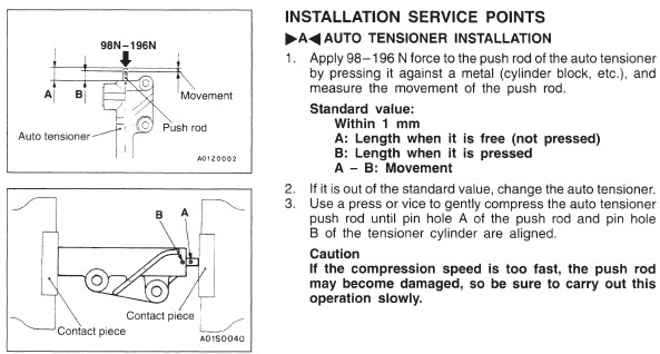 Pokud jde o ten hydraulický napínák (no, on je to spíše tlumič či kompenzátor měnící se délky řemene v souvislosti s tepelnou roztažností), ne každý motor Mitsubishi je jím osazen (GDI ho ale všechny mají). Názory na jeho preventivní výměnu se liší: jeden z mých osvědčených servisů tvrdí, že ho mění ze zásady vždy, protože si nemůže dovolit žádné následné problémy, druhý ho mění dle konkrétního posouzení jeho stavu, přičemž rozhodujícím vodítkem je únik oleje. Na Galantu 2,5 V6 jsem ho při 178 tis. km nechal původní, ale na SW 2,4 GDI se ho při 230 tis. km chystám raději vyměnit.
