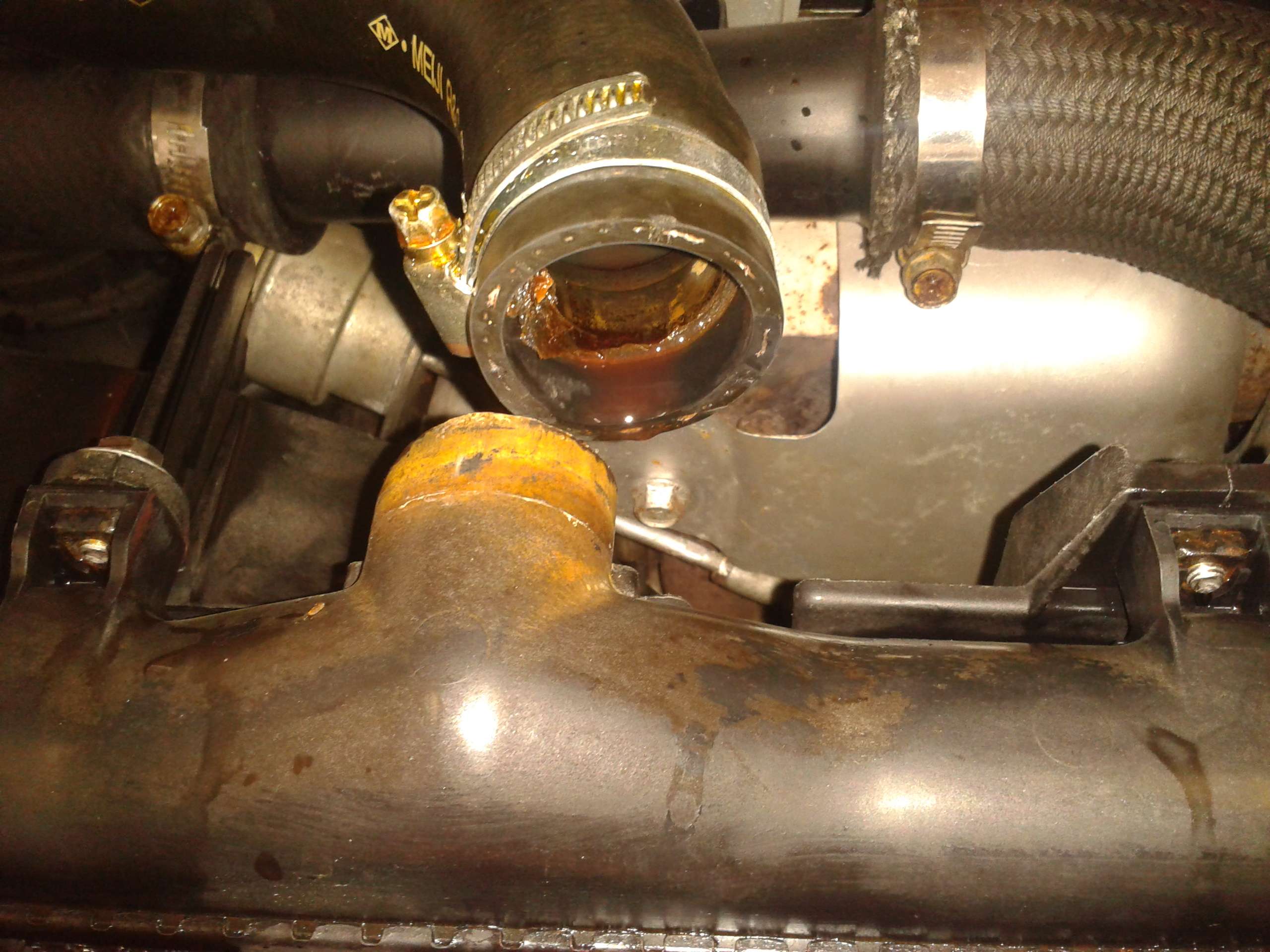 K té kapalině: Na zbytku ulomené části nátrubku chladiče je zvenčí, tj. mezi plastem a hadicí, nános, který by tam mohl být, jen pokud by se jednalo o hliníkový díl (hliník v takových místech rád oxiduje). Ovšem mezi plastem a pryží hadice nemá co dělat, a to ani po těch 18 letech - tedy samozřejmě pokud byla pravidelně měněna chlad. kapalina! Proto jsem se vyjádřil právě takto: