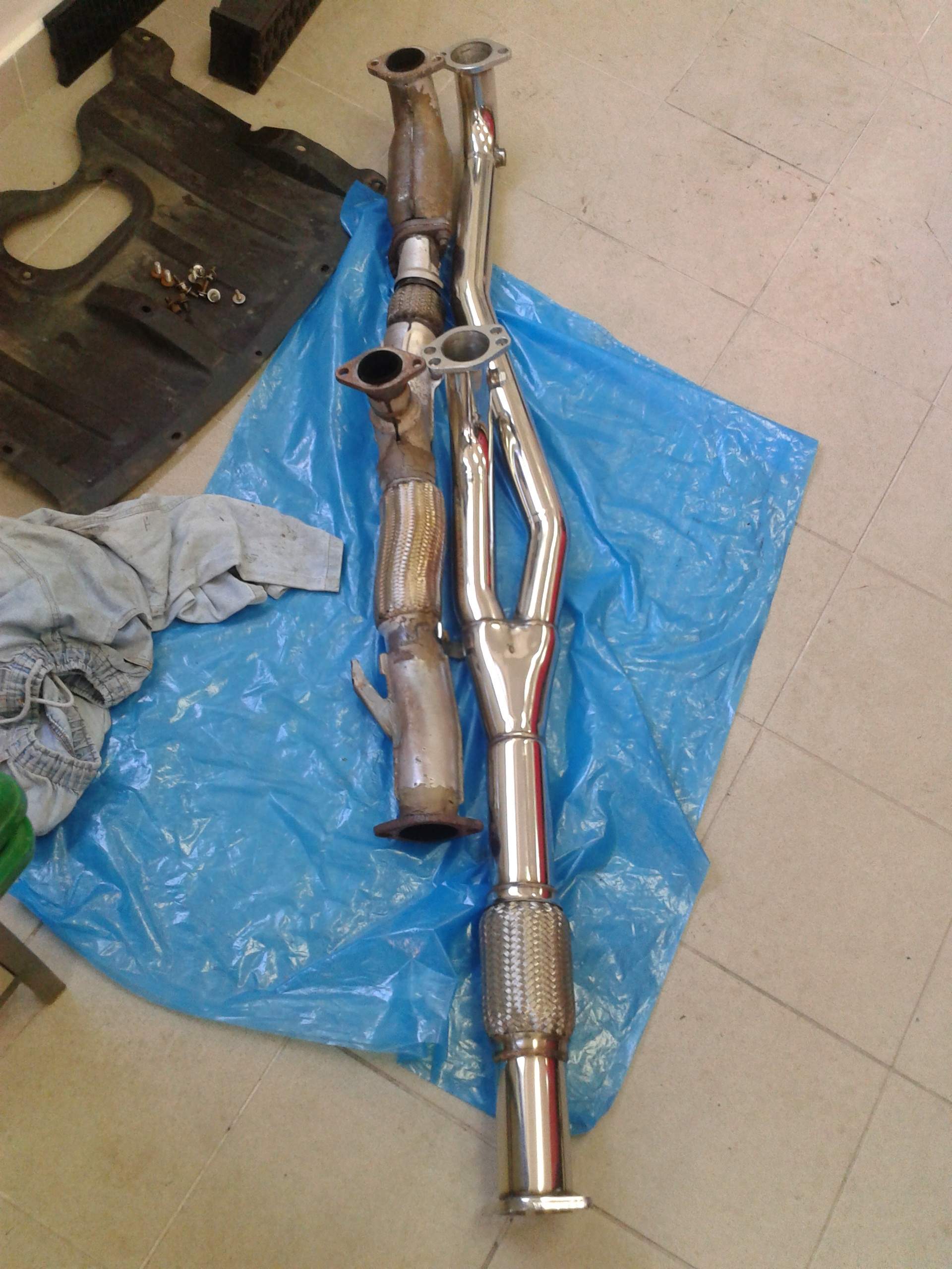 enemdym má na mysli spoj výfuků každé trojice válců viz. fotky.... To jsem nedávno nahrazoval, protože původní řekněme T-pipe byla v háji, také jsem eliminoval katalyzátory a zvětšil průměry trubek a mám připravené nové svody, ty jsem ještě nenamontoval.... Povšimněte si také značné redukce hmotnosti. Má to však háček a s tím se ještě musím utkat a to je 'naladění' nějakých restriktorů za turby, protože průběh nástupu se změnil a turba nyní potřebují větší točky aby dodala dostatečný tlak... je to logické, protože platí, že s růstem průřezu klesá rychlost proudění, protože množství plynů je v podstatě stejné, také klesá tlak a tak odevzdaná práce do turba je menší, zde je vidět, že naladit celý výfuk je docela věda :lol: Jinak až najdeš nějakého 'opravdu zkušeného mechanika' na GT-ka tak dej vědět :lol: