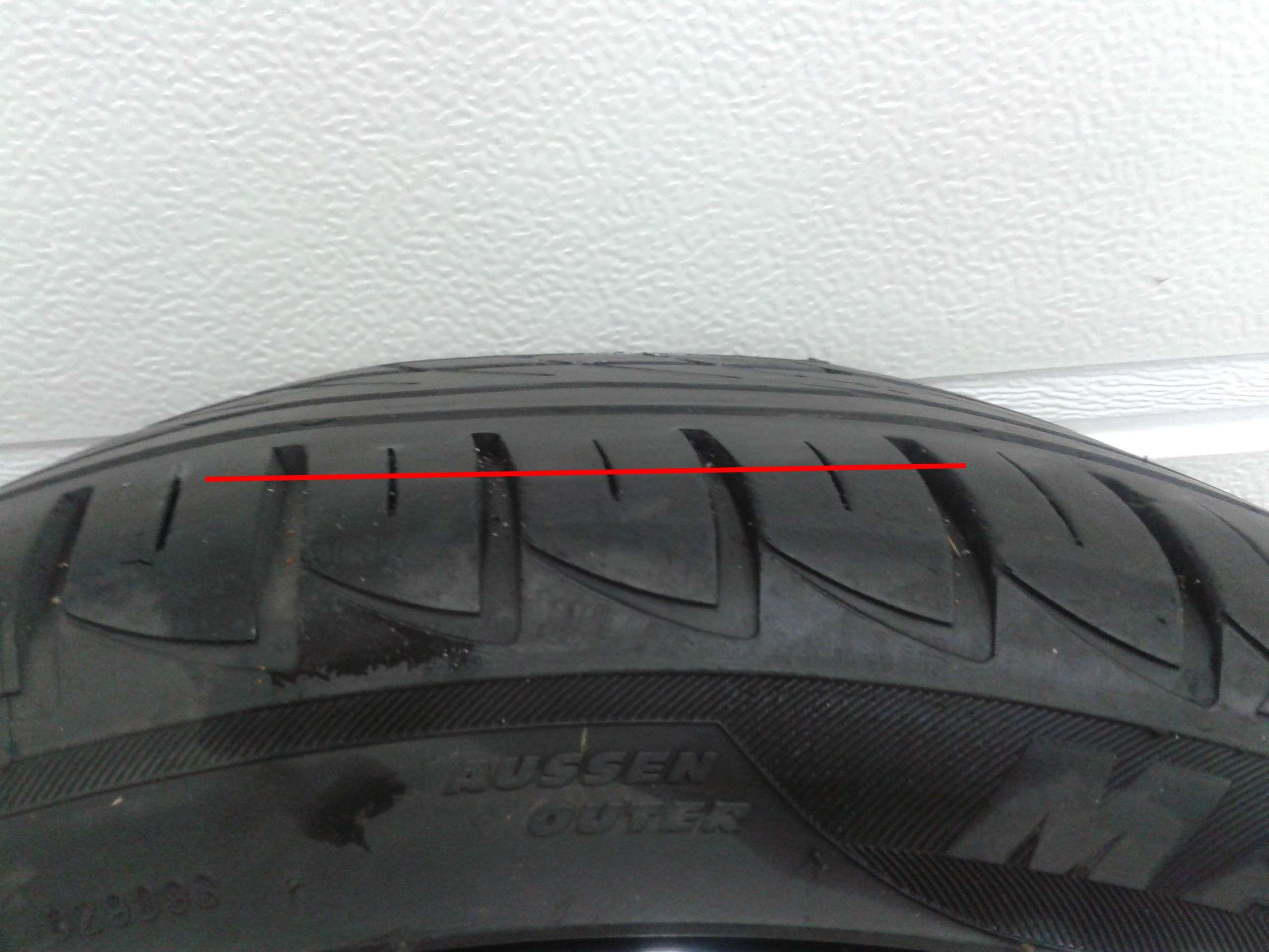 ve čtvrtek okolo půl desáté dopoledne mě na hradecké dálnici náhle vjel do předjížděcího pruhu kamión (milému řidiči přeji aby se nejméně 14 dni nevysral) GT jsem ubrzdil, ale na jedné gumě mám vybržděnou plošku a plášť je v pr..li! Ploška je tak velká, že jsem kůli vibracím sotva dojel - viz. fotky. Ze 180 na cca 80 to byl fakt záhul a to doslova, v zrcátku jsem viděl dým z gum. Škoda, že nemám on-board kameru, mohl jsem možná na tom debilovi něco vymáhat....